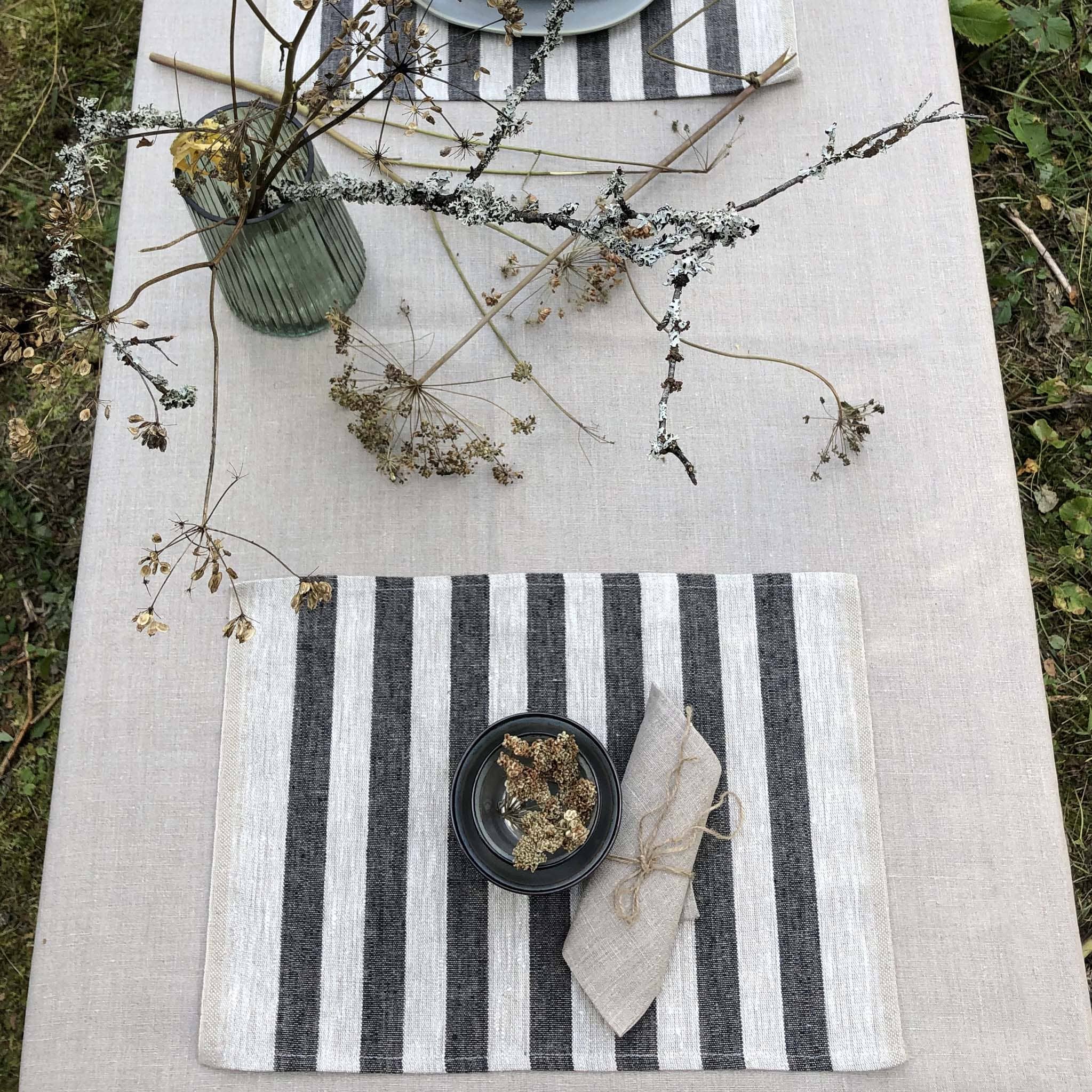 Black Stripes Rustic Linen Placemat