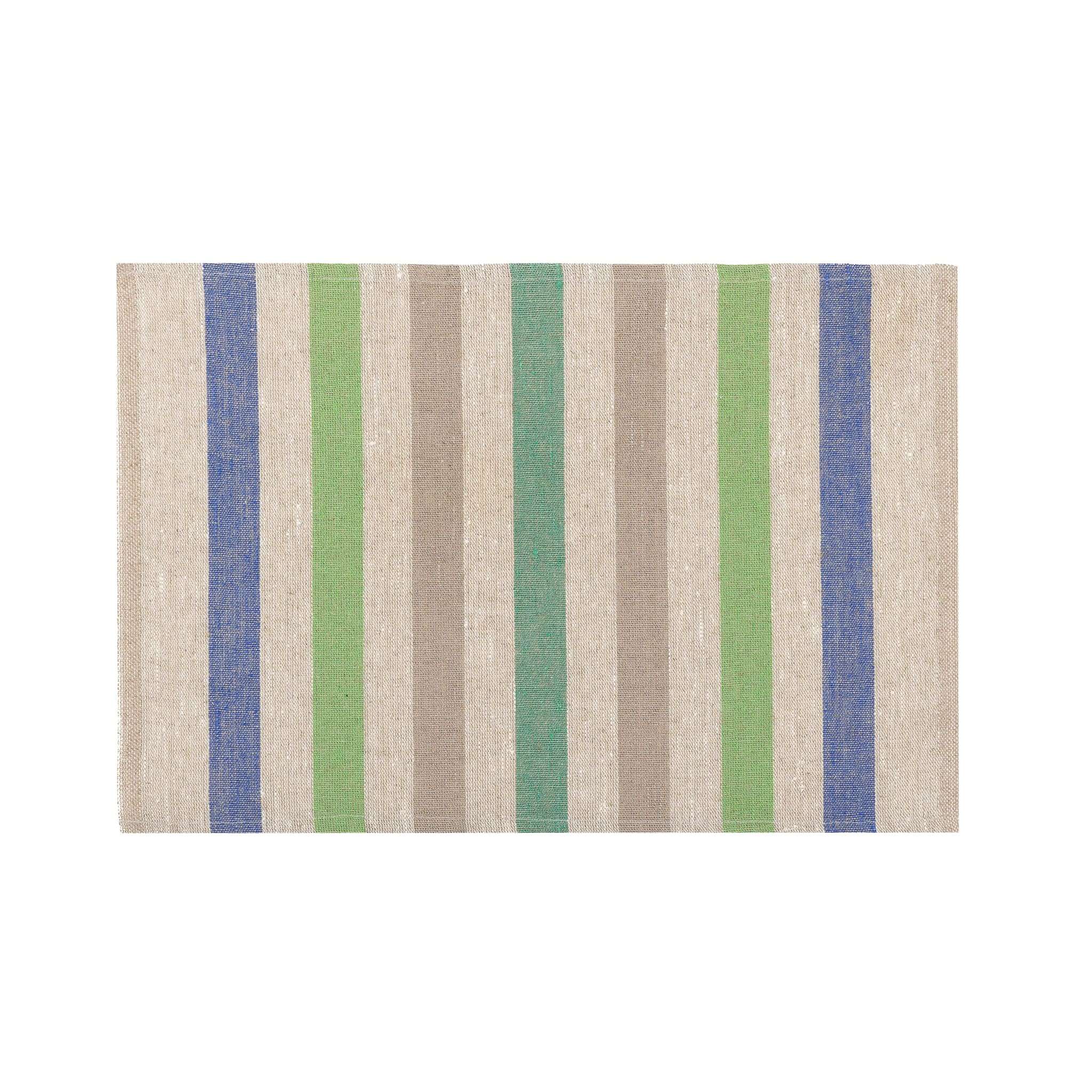Blue, Green and Grey Stripes Rustic Linen Placemat