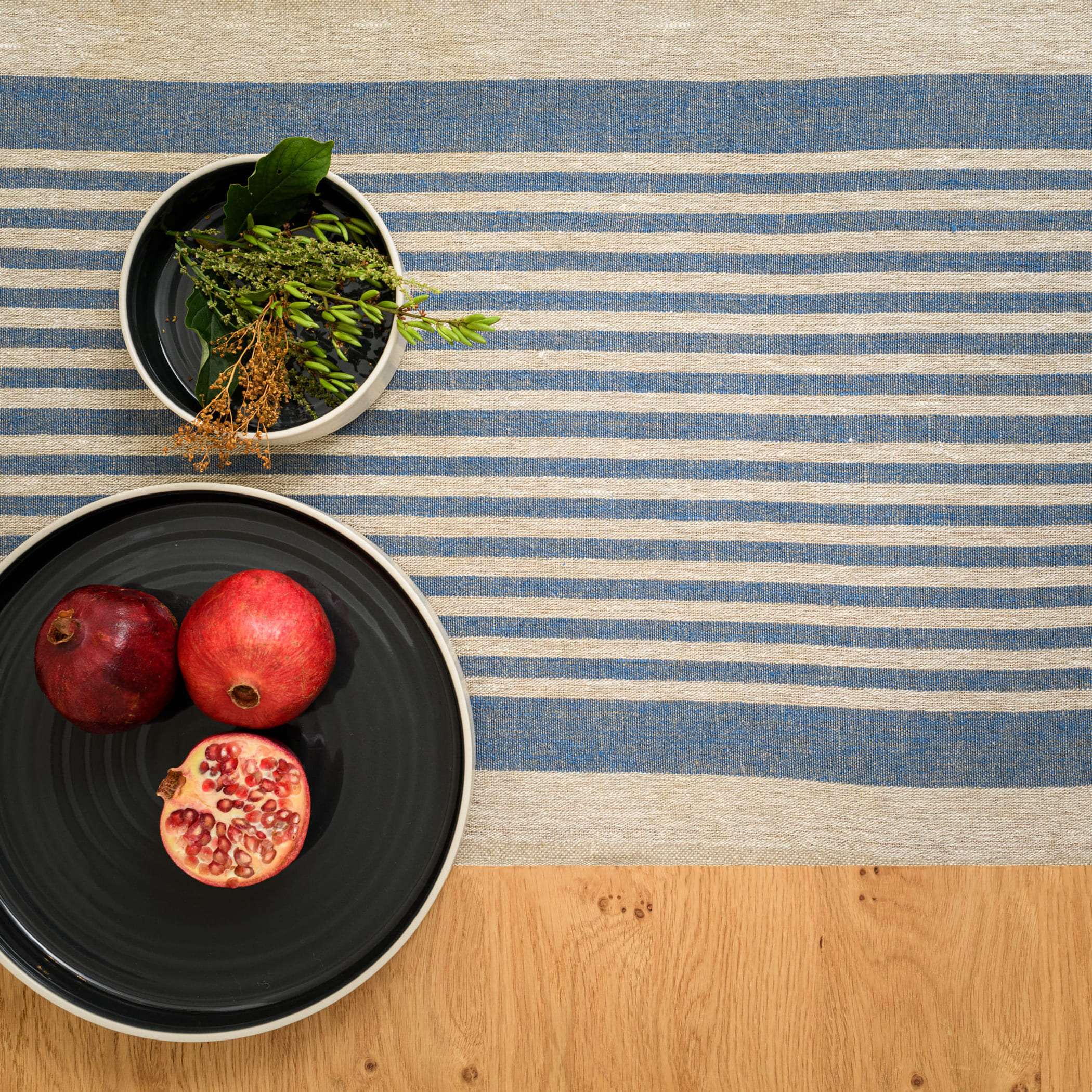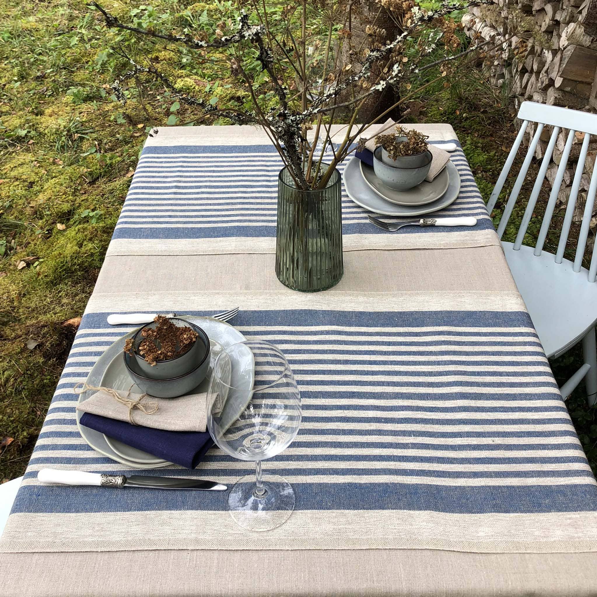 Rustic Linen Table Runner – Blue Thin Stripes