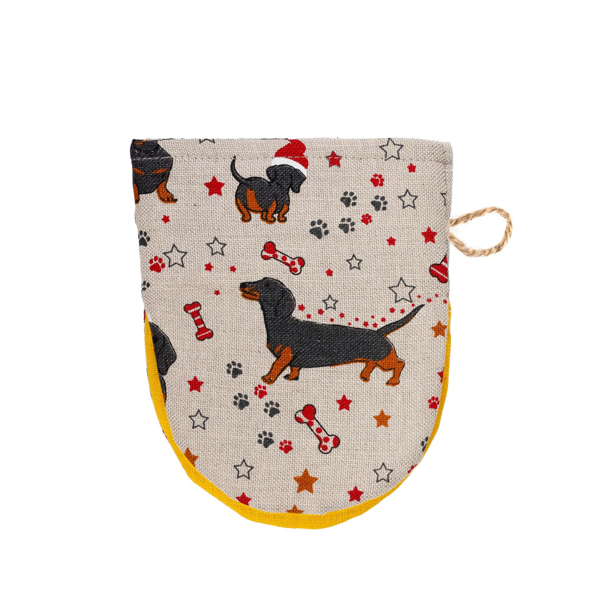 Christmas Dachshund Linen Mitten