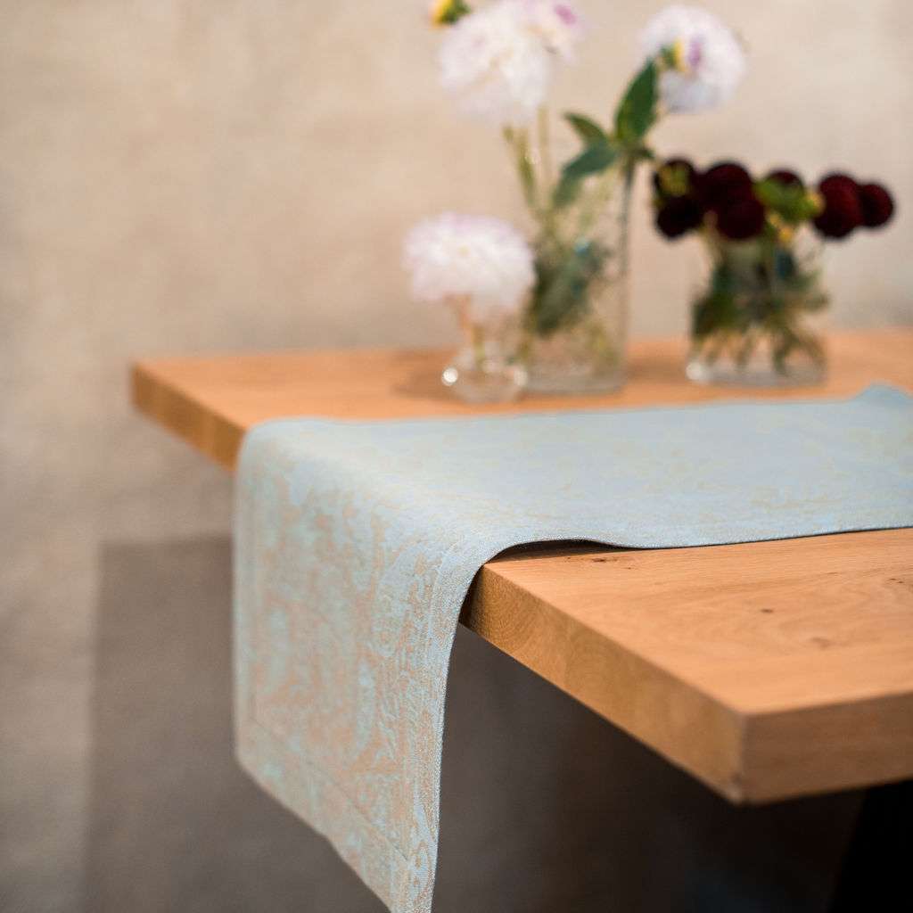 Classic Grey Blue Paisley Linen Runner