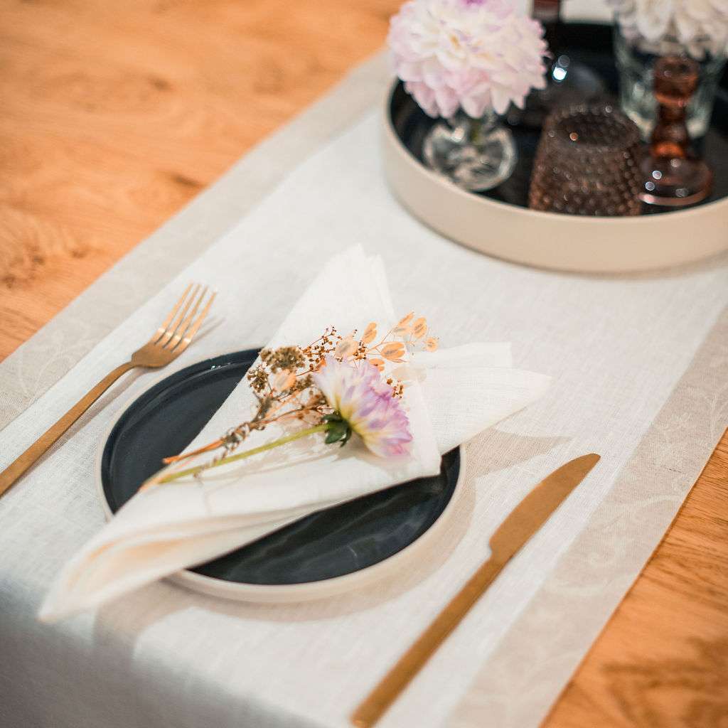 Classic White Linen Runner with Fieldflower Border