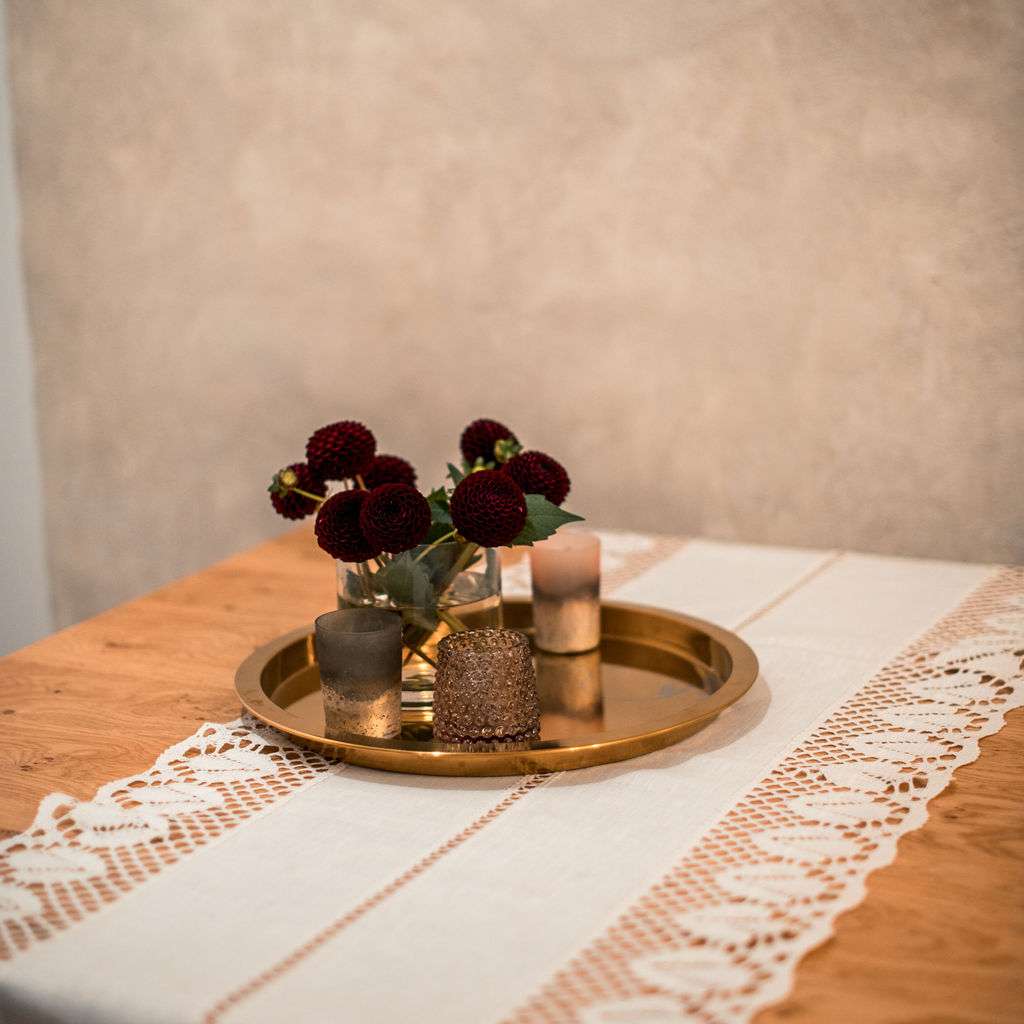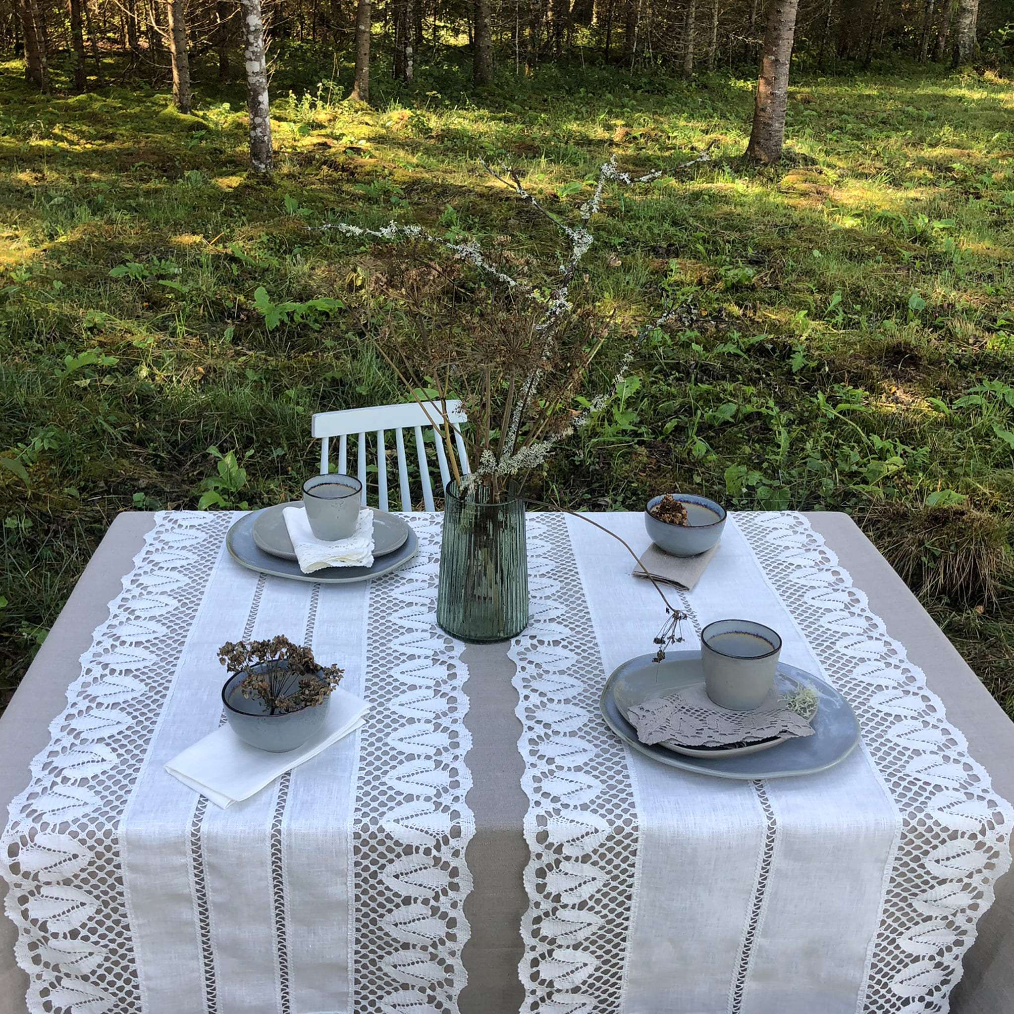 Classic White Linen Runner with Lace