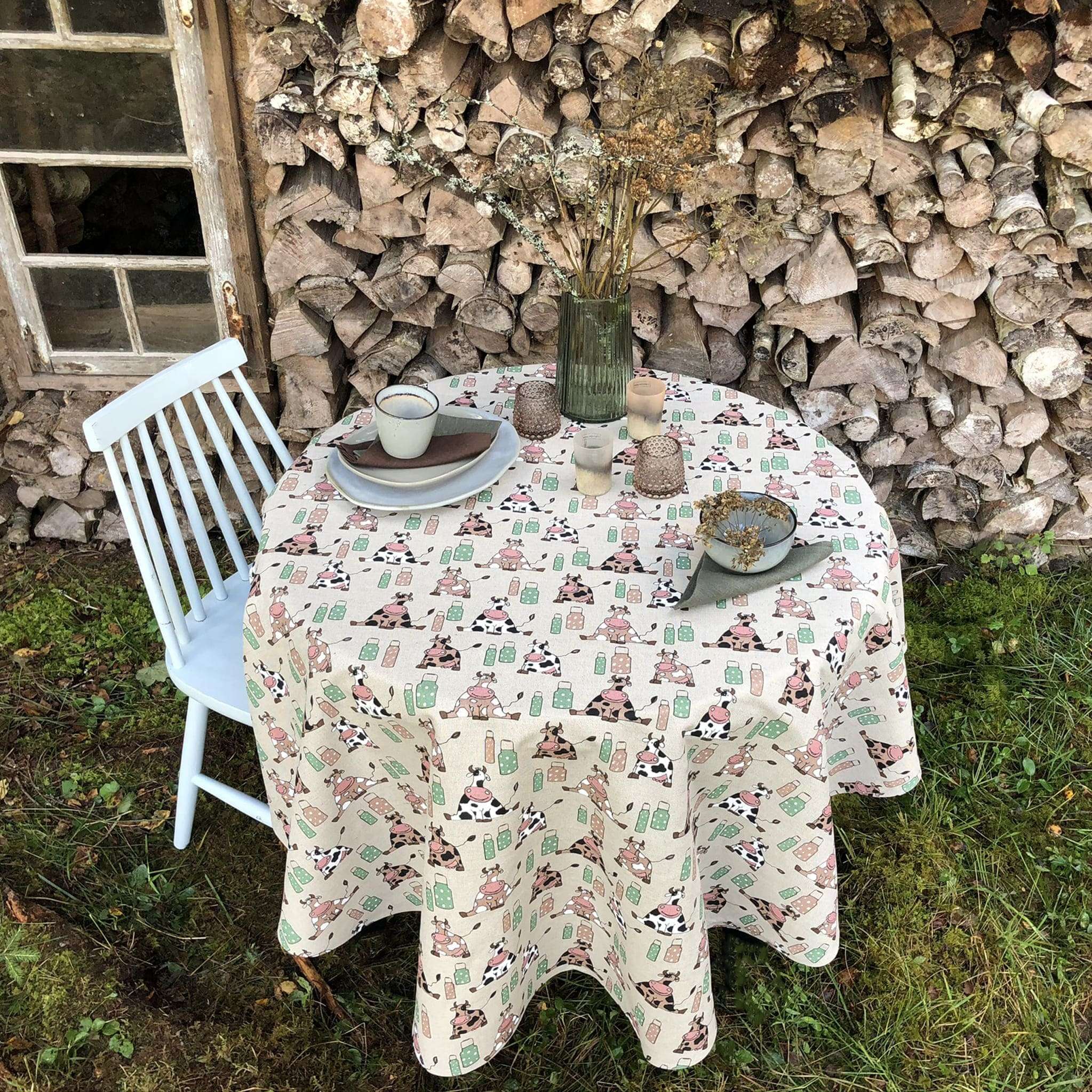 Cows Round Linen Tablecloth