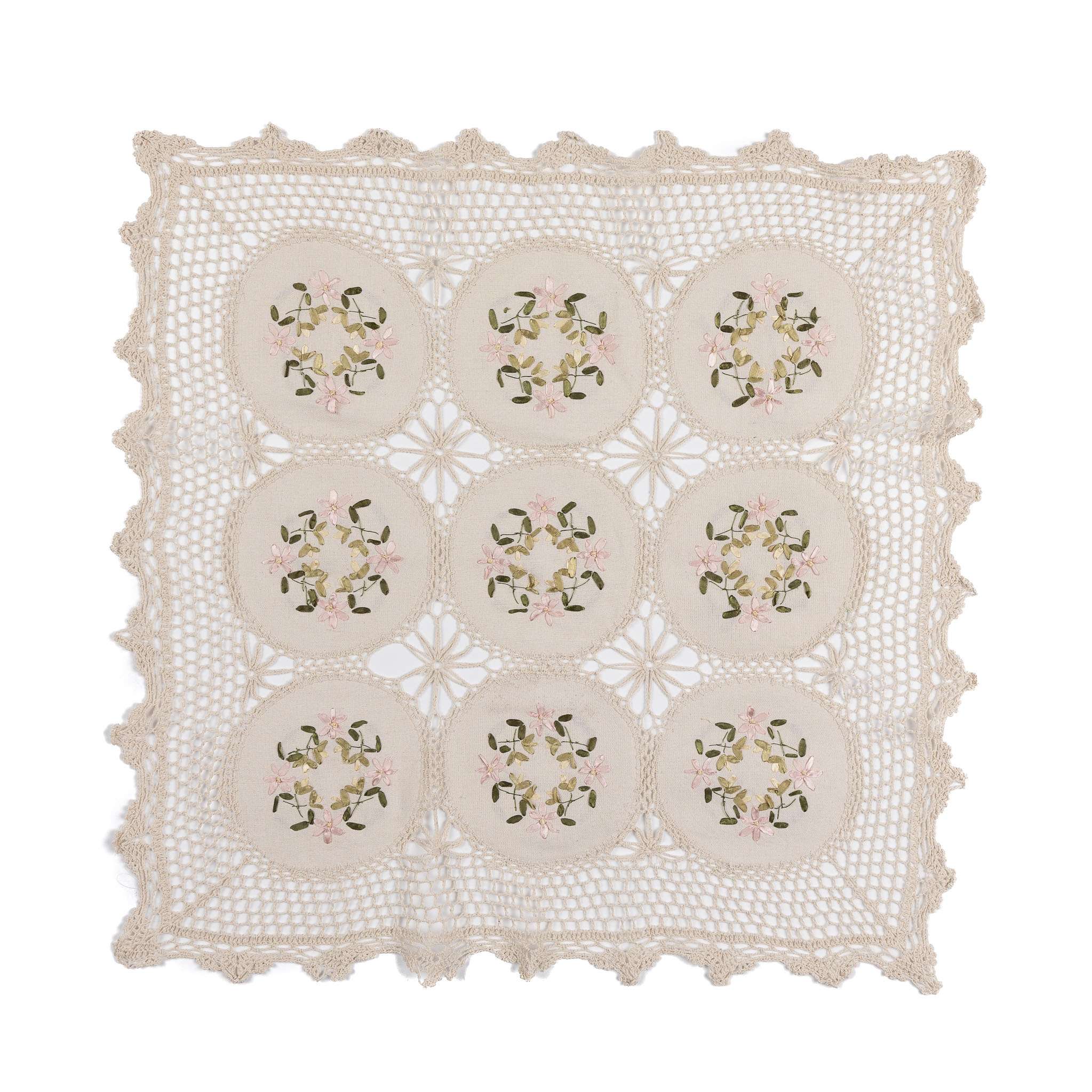 Puuvillane pitsiga linane laudlina – ümmargused lilled