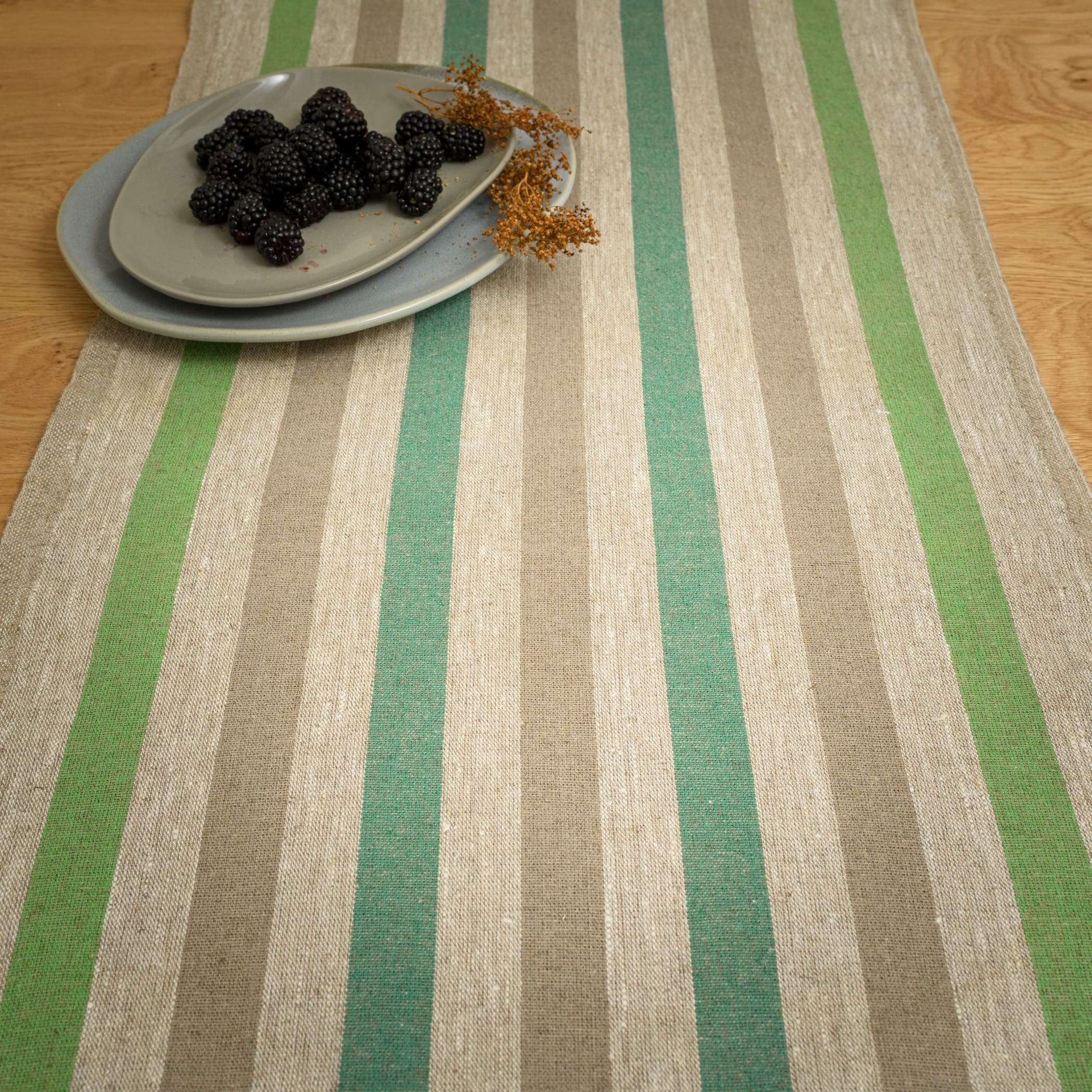 Rustic Linen Table Runner – Green and Grey Stripes