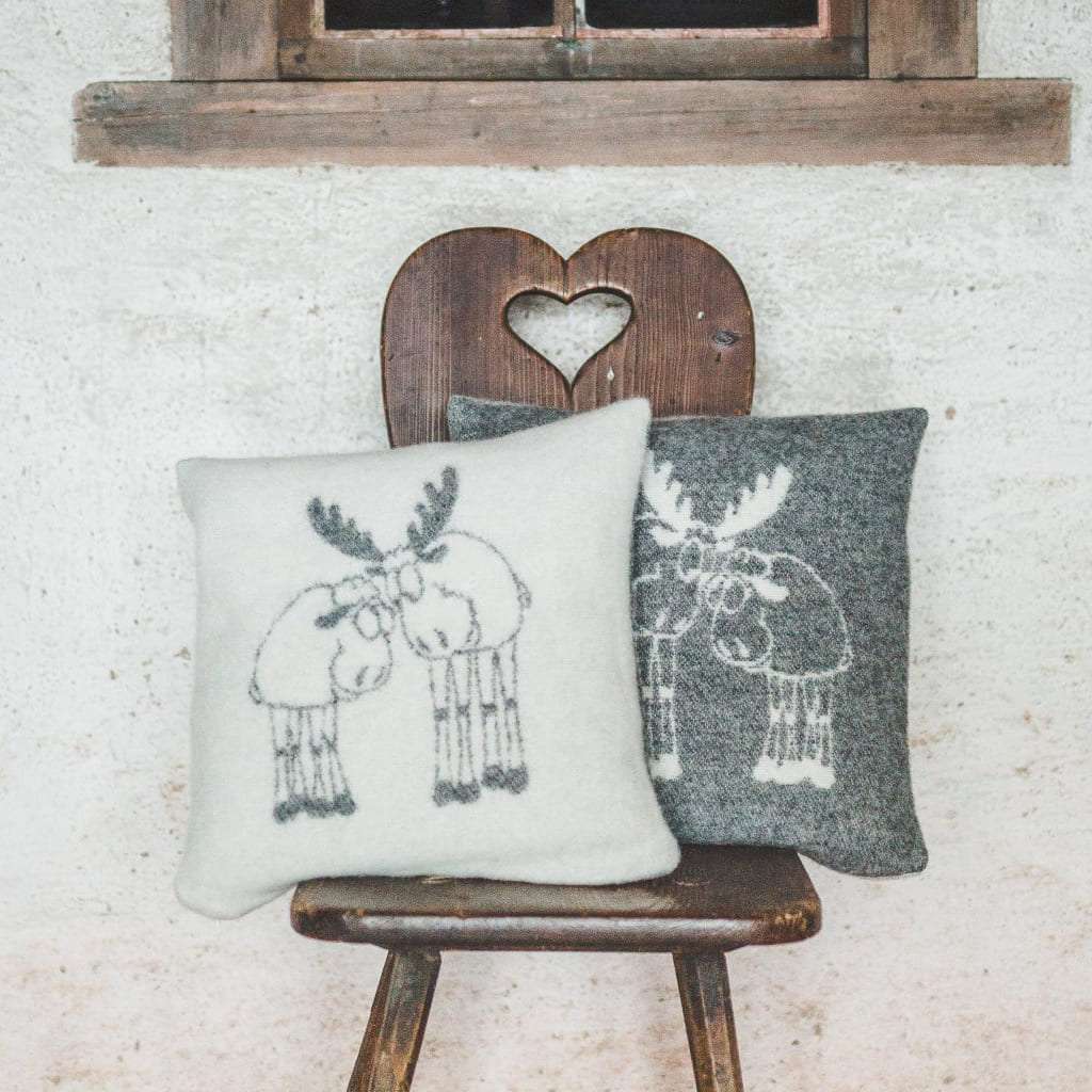 Grey Reindeers Wool Cushion Cover