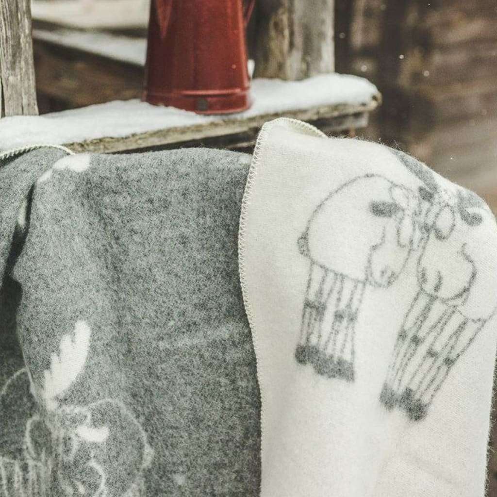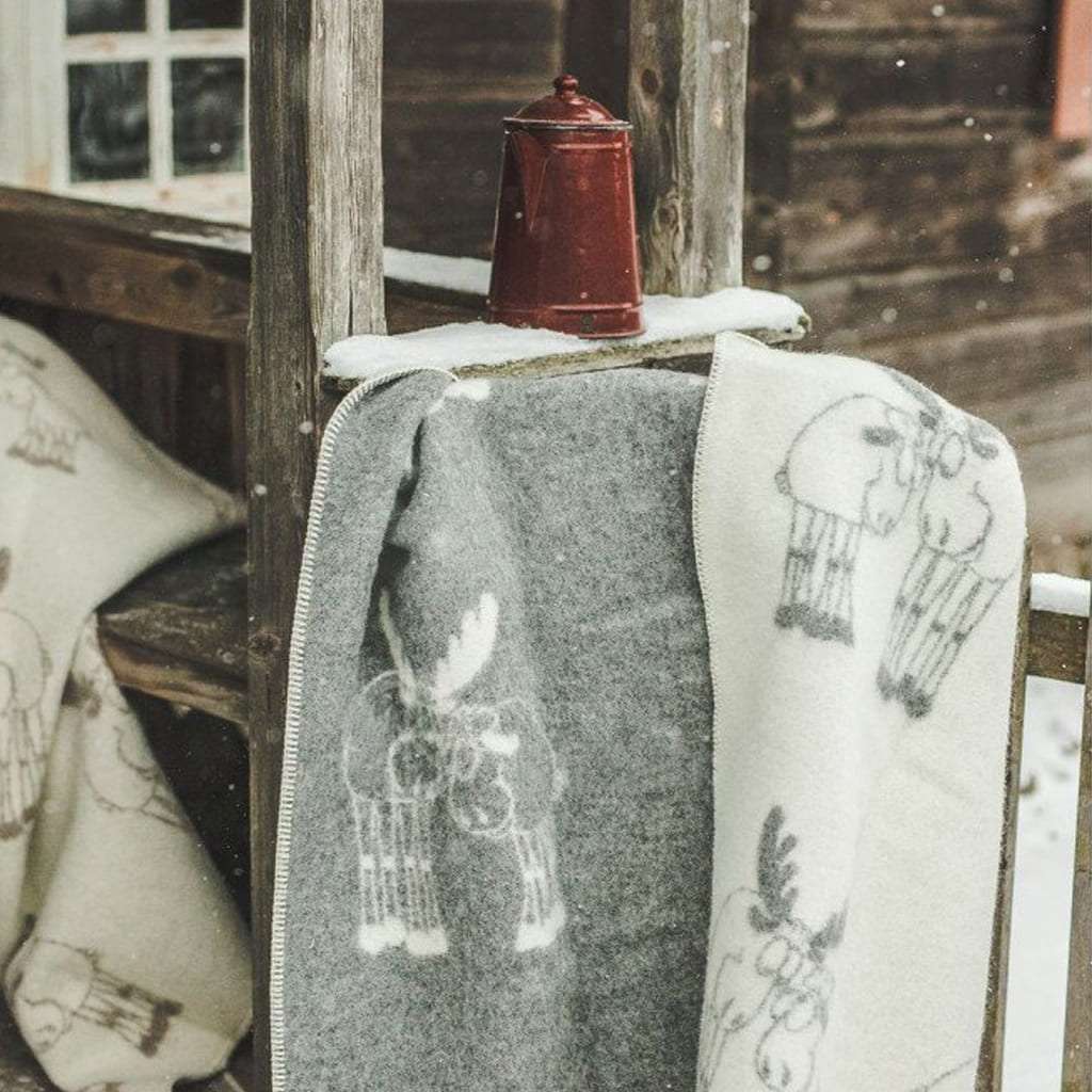 Grey Reindeers Wool Throw