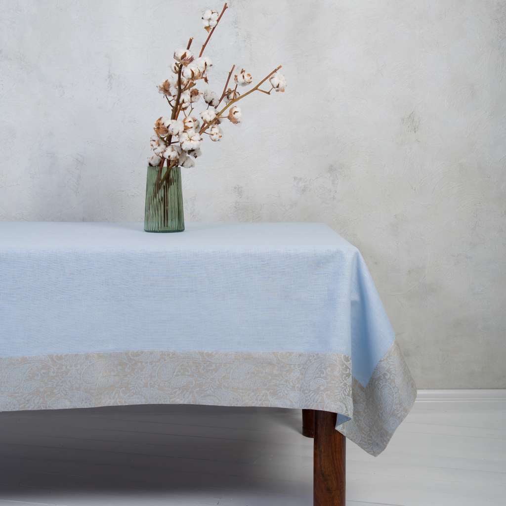 Light Blue Linen Tablecloth With Light Blue Paisley Border