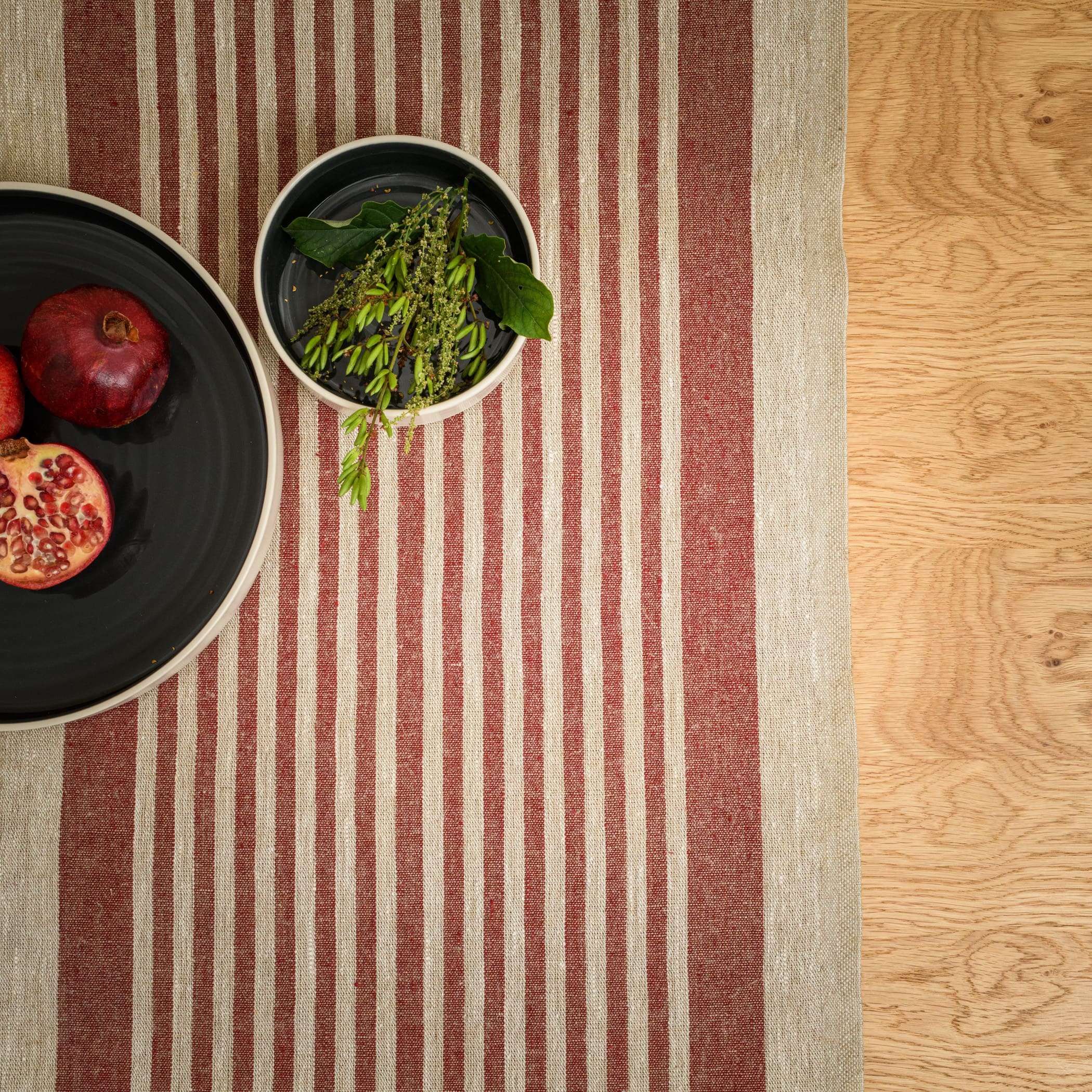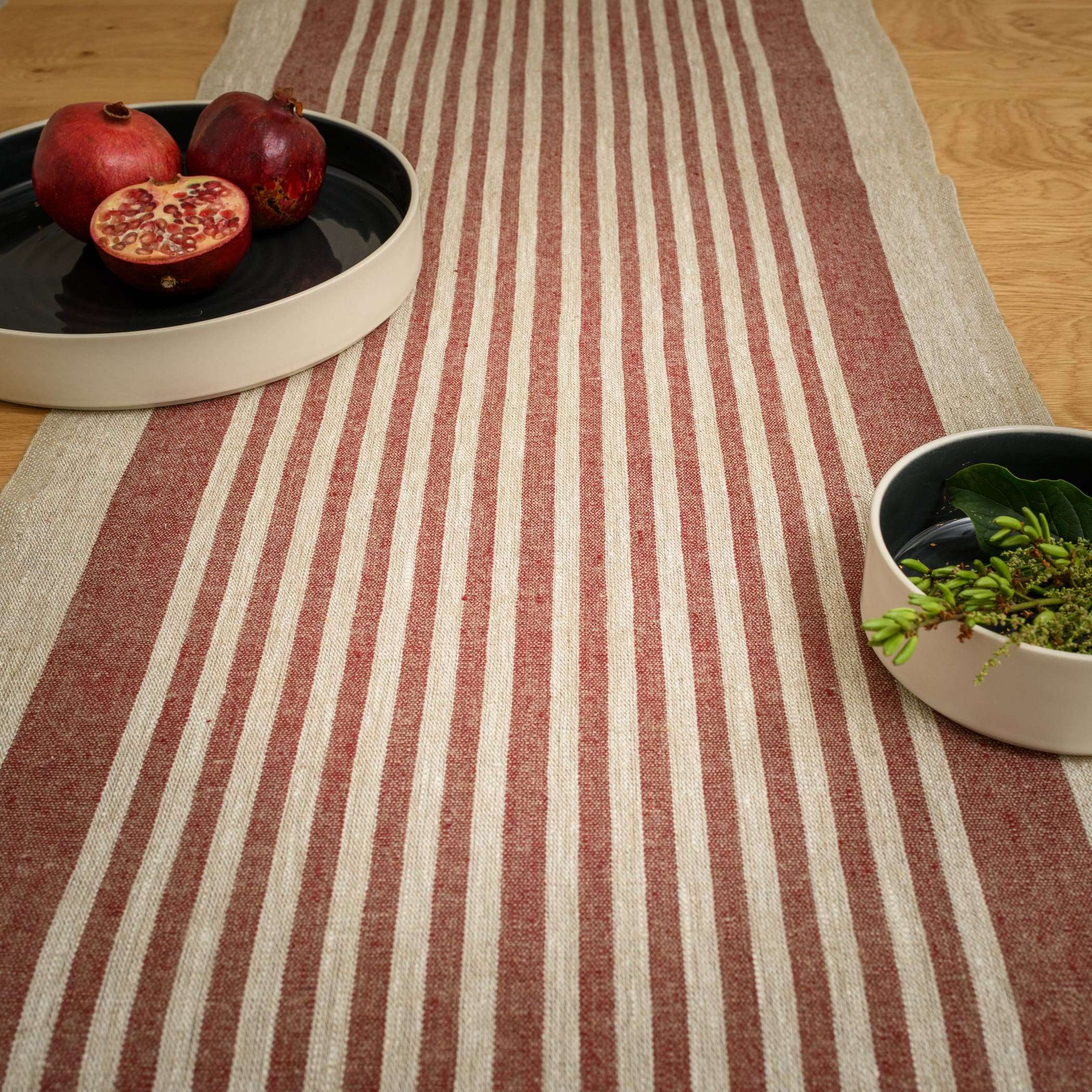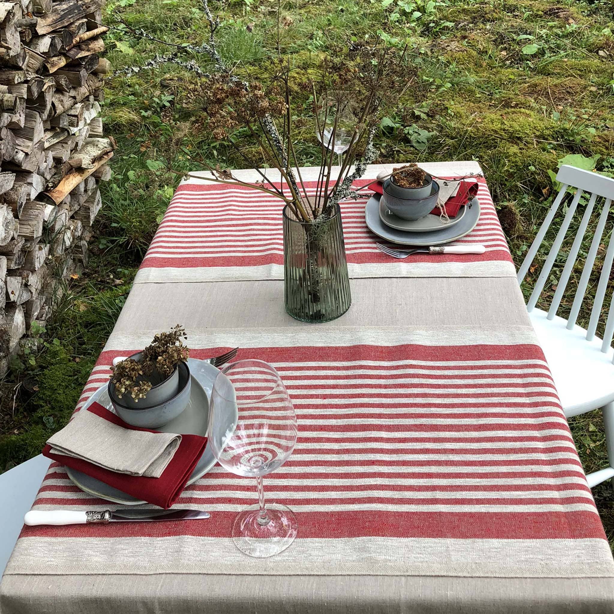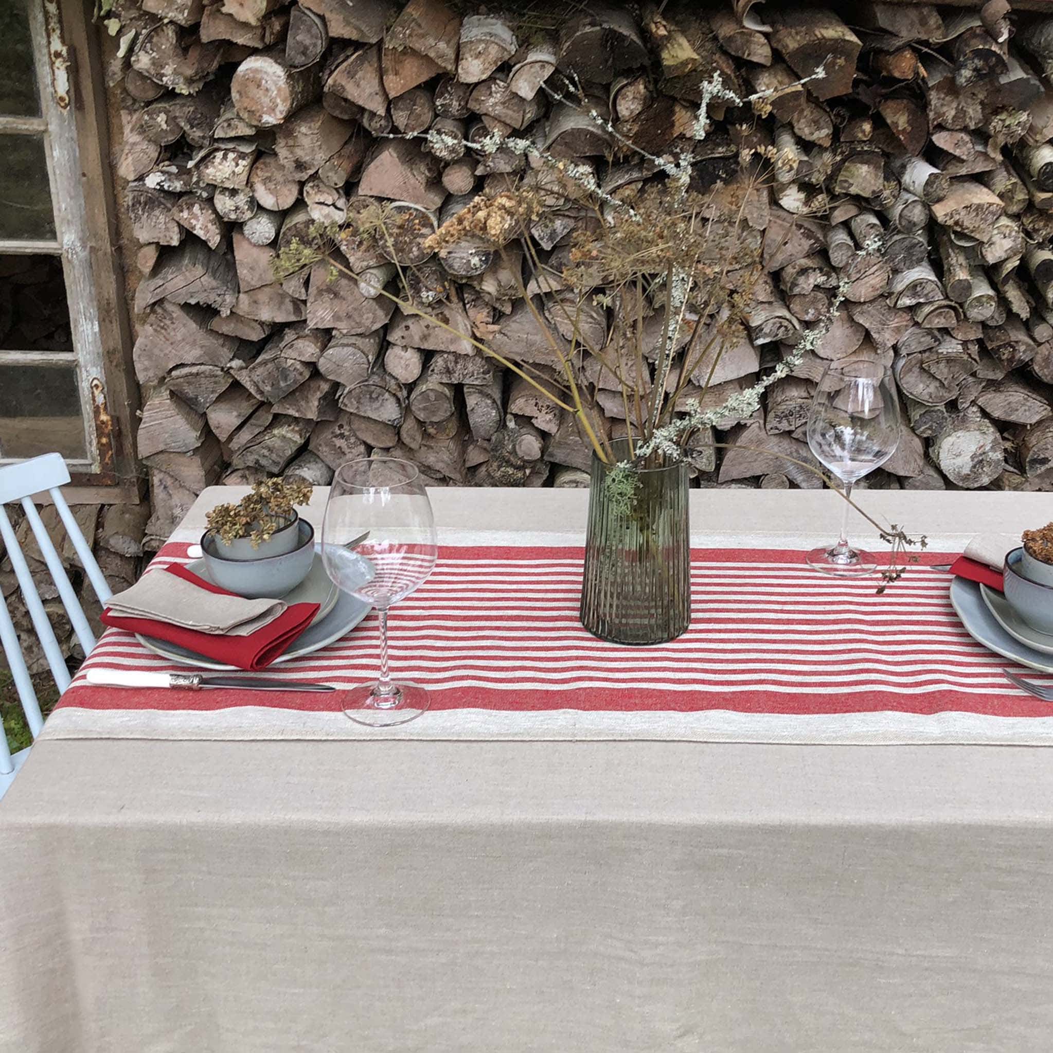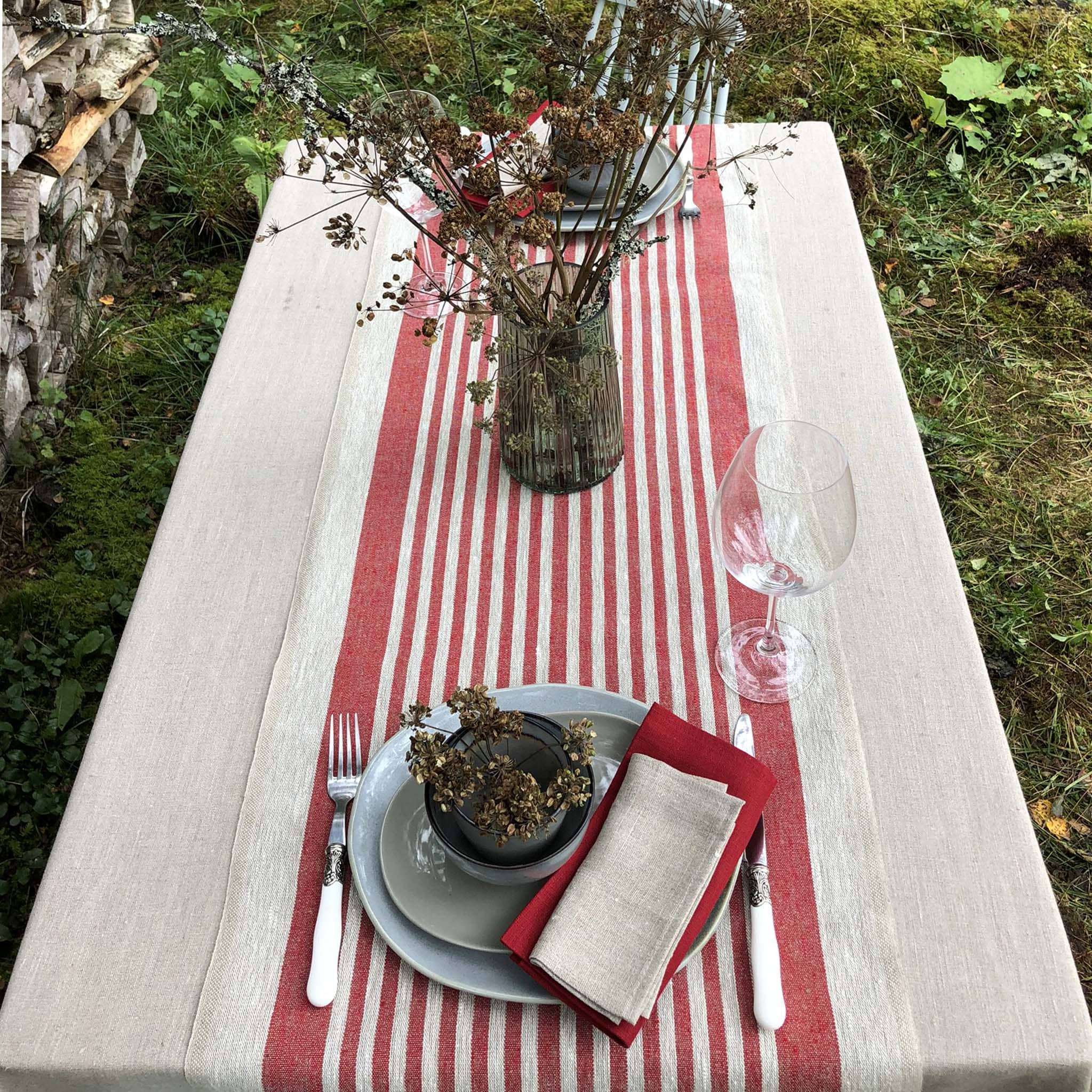 Rustic Linen Table Runner – Red Thin Stripes