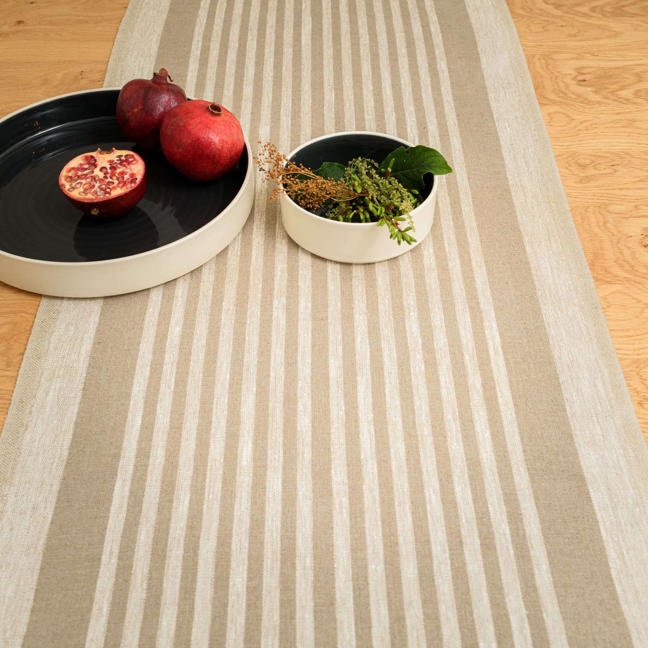Rustic Linen Table Runner – Beige Thin Stripes