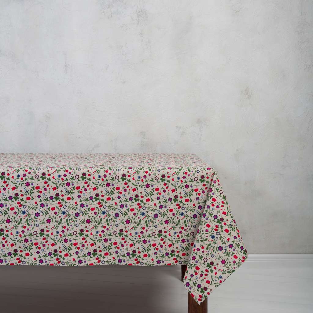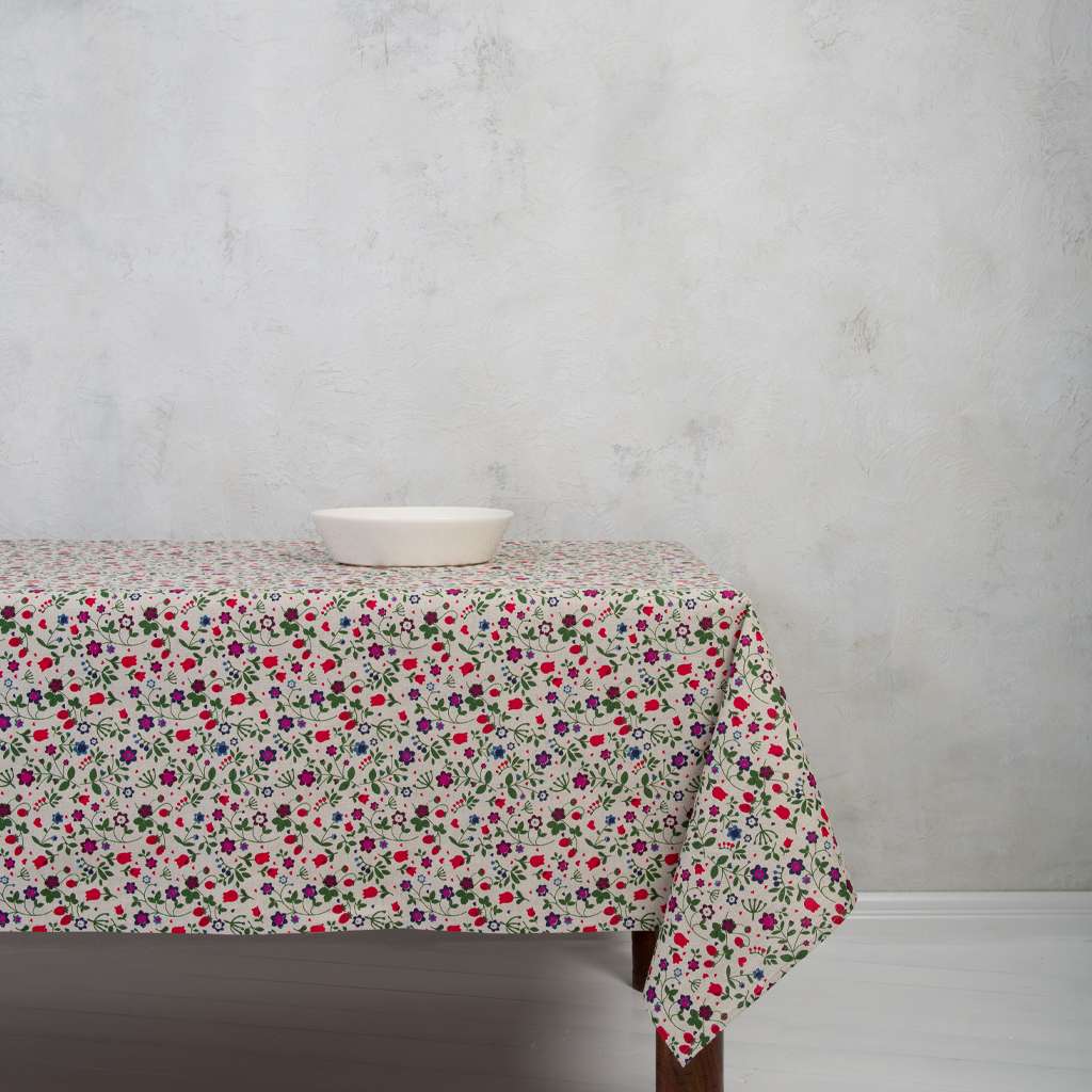 Wild Strawberry and Flowers Linen Tablecloth