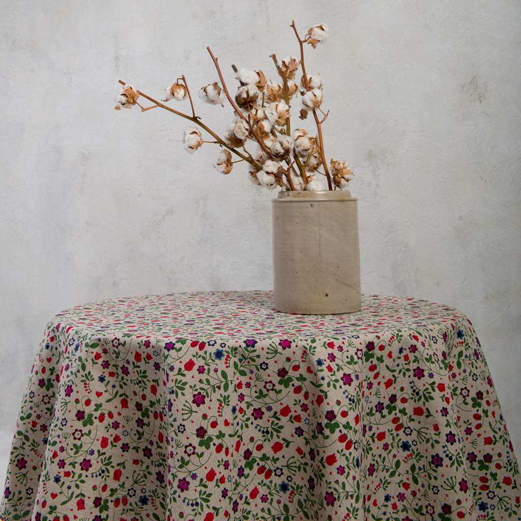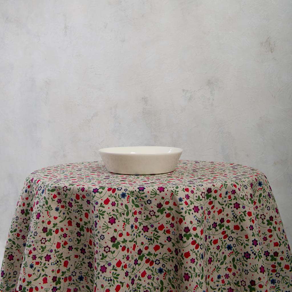 Wild Strawberry and Flowers Round Linen Tablecloth